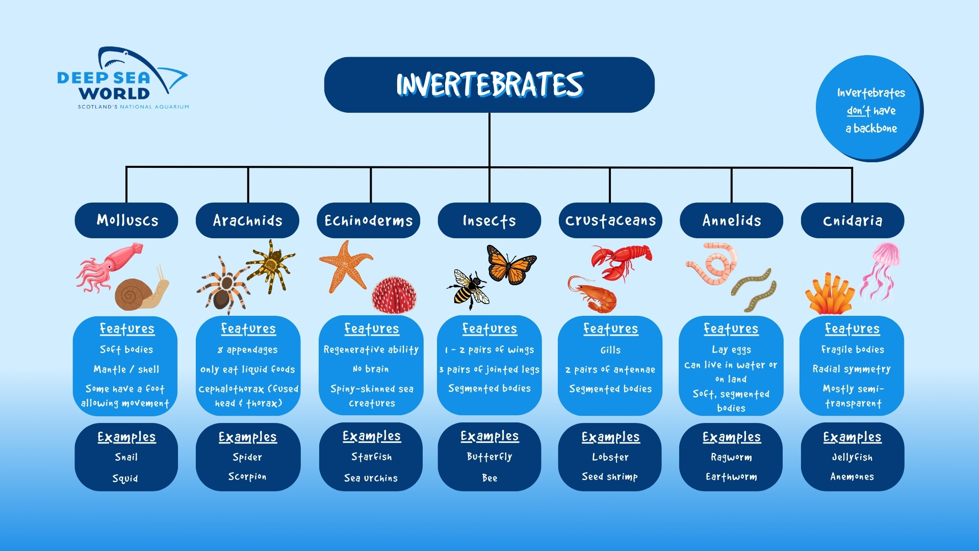 Now that you know what vertebrates are, it shouldn’t be too tricky to work out what invertebrates are. Can you guess?