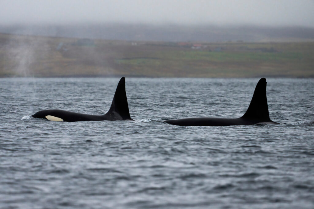 Toothed whales typically eat squid and other fish, such as herring. The orca will also have a broader diet that includes seals and sea lions. In Shetland Orkney, orcas may be seen feeding on seals, hunting in coordinated attacks.
