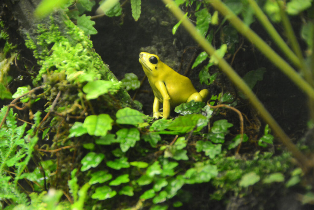 Poison dart frogs: This is a group of frogs native to Central and South America, characterised by their brightly coloured bodies. Their skin is highly poisonous, making them dangerous to touch. Poison dart frogs typically live amongst the leaves on the forest floor, with some species living higher in the forest canopy. The golden poison frog (Phyllobates terribilis) is considered to be the most poisonous animal in the world, with enough toxin to kill 10 humans. Interestingly, this species is no bigger than 2.5cm in length. Poison dart frogs are colourful on purpose to warn predators that they are toxic, a phenomenon known as aposematic colouration.