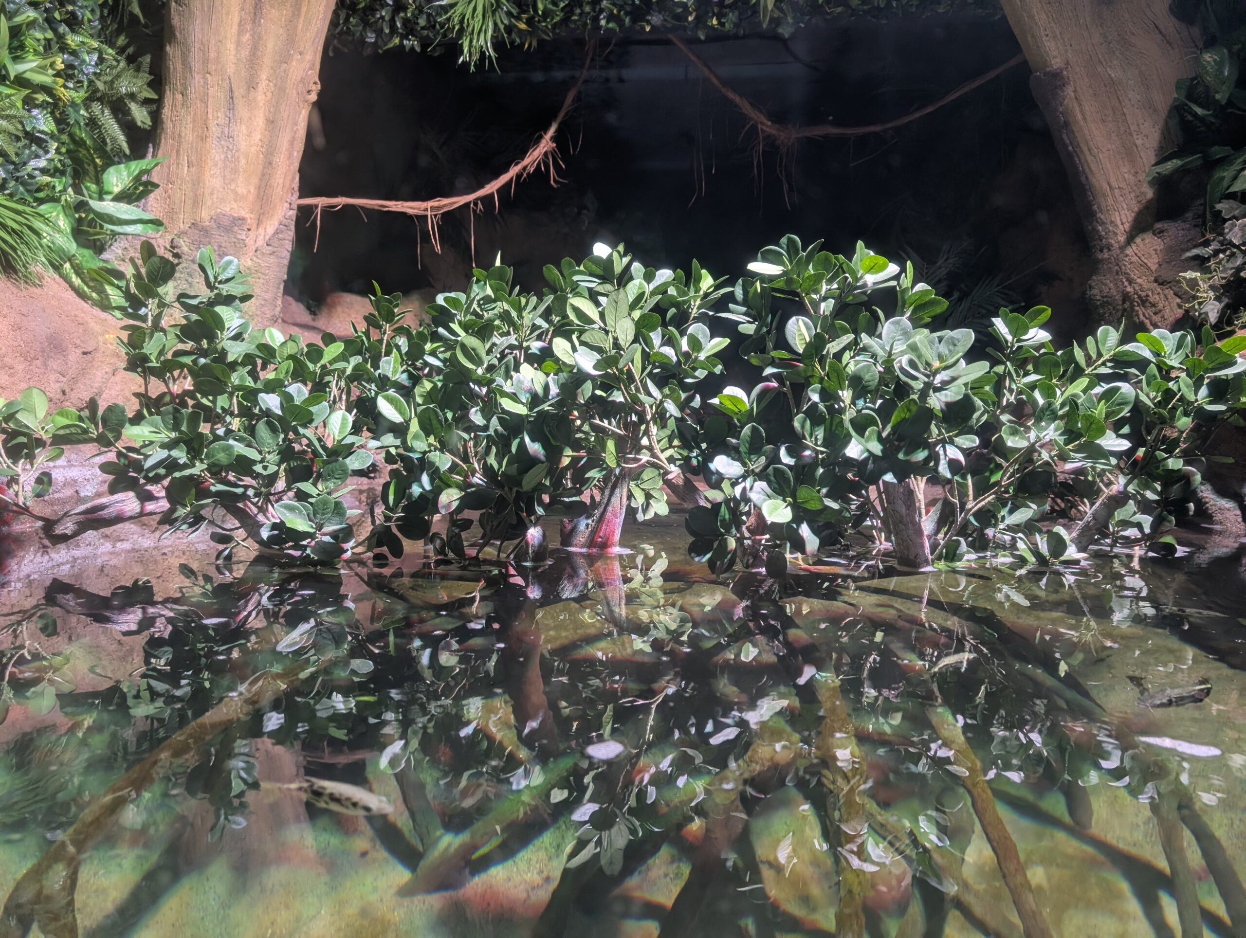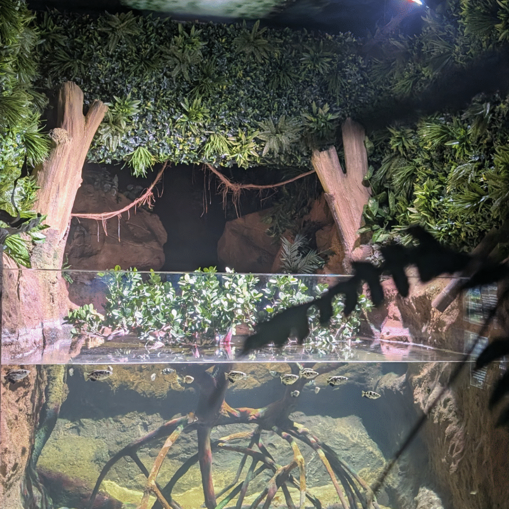 The Mangrove Exhibit here at Deep Sea World contains a dynamic biotope showing off the importance of mangrove environments around the globe. We’ve replicated the habitat, including the submerged roots and access to saltwater that the trees and animals would have in the wild.