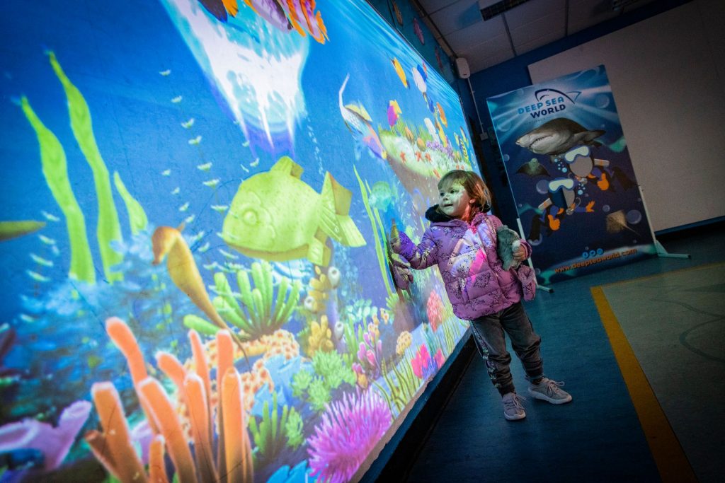 In October 2019 Deep Sea World started to install Aquasketch a 7m wide and 2m tall Virtual Aquarium. This was to bring new life into the old Shark Classroom and give visitors a more interactive and unique experience. The screen was achieved with two high quality projectors and 10 sensors which would allow visitors to interact with the full gigantic screen. The room is dark to allow the bright screen to be as striking as possible with some dim lighting in the drawing section to allow the creativity to flow. This continues to be a popular part of every visitors birthday and we love to see them taking their created fish home as a souvenir.